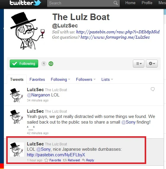 LulzSec Hacking team today Release the Sony's Japanese website Database dump via their Twitter Account. This is the 9th Attack on Sony. This attack is also using SQL Injection method.Update : 10th Attack on Sony --> Sony Ericsson Got Hacked by Idahca (Lebanese hacker Group)